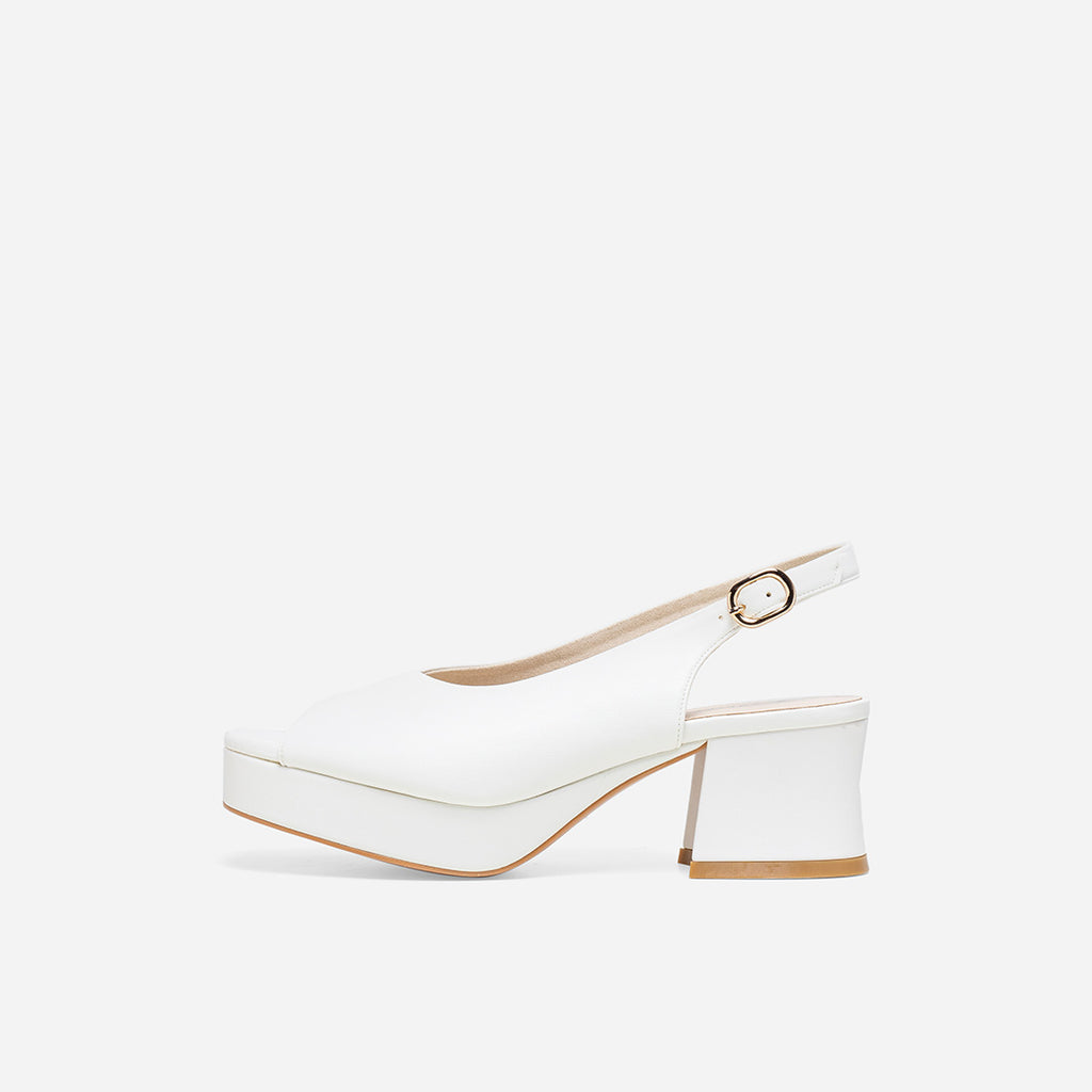 Christy Ng's Nancy Slingback Wedge is easily recognizable for its clean minimalist design. Handcrafted from vegan leather, they are set on chic square toe silhouette on chunky heels for added stability. The 1 inch front platform and padded footbed means these slingback wedge feels just as comfortable as they look. The slingback straps and rubber outsoleĀ ensure you'll stay grounded on slick surfaces. Wear yours with everything from dress to denim.